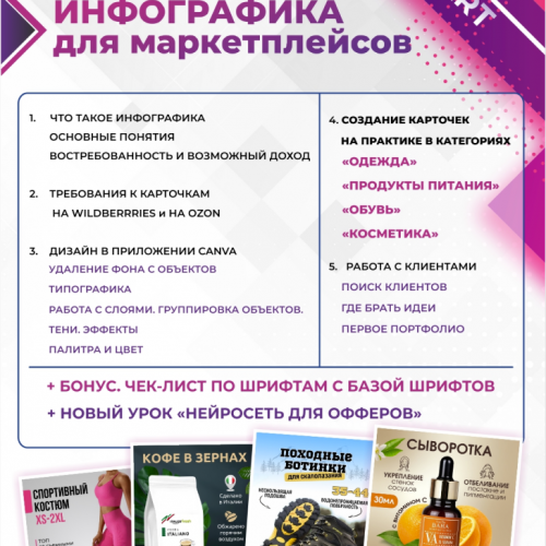 Доступ к обучающему курсу "Инфографика для маркетплейсов" с чатом помощи [бессрочно]